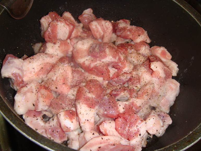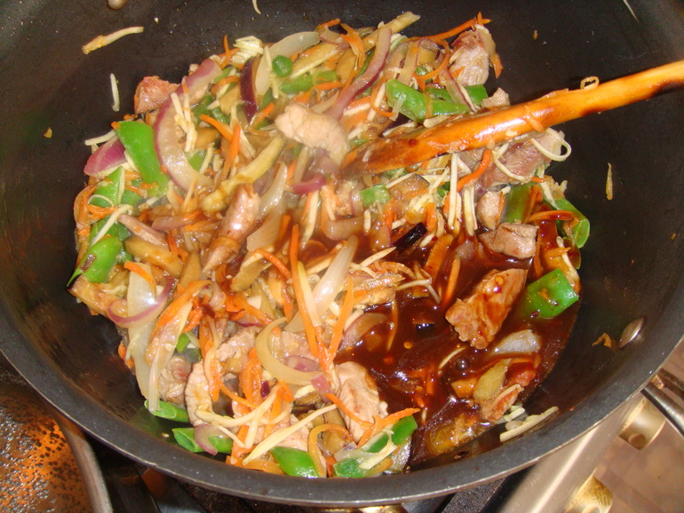 Блюда из мясаСвиное мясо очень быстро готовится. И хорошо принимает вкус продуктов-соседей по готовке. Поэтому использую его, когда надо быстро что-то приготовить и с большим количеством ингредиентов.