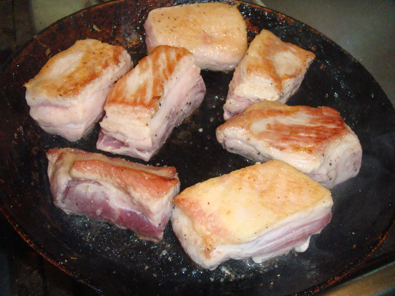 Посолить, поперчить, обжарить до корочки на сильном огне: