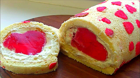 Печенья, пирожные, торты, пончики, кексыВкусный и романтичный бисквитный рулет со сметанным кремом и желе . Этот рулет интересен тем , что он с рисунком , а желе внутри рулета в виде сердца . Замечательный десерт на 14 февраля . Готовьте и радуйте свою вторую половинку в день Святого Валентина .