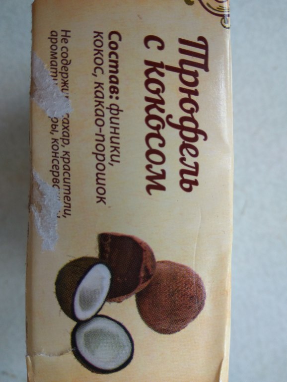 Я покупала недавно конфеты, в составе финики, кокосовая стружка, какао порошок. По вкусу не скажешь что там присутствуют финики. Если вам интересно, то сделаю фото коробочки