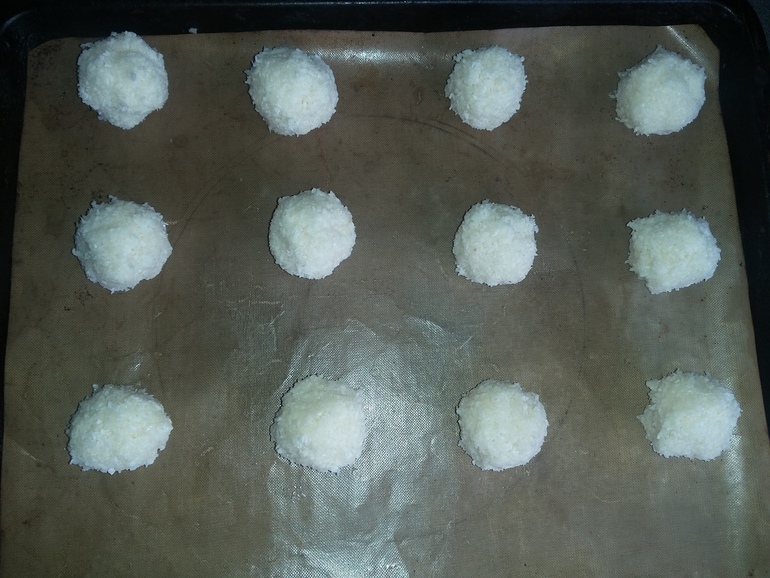 Скатать шарики размером с грецкий орех, разложить на противне: