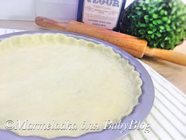2. Раскатать тесто, покам оно холодное, уложить в форму и снова убрать в холодильник на 20 минут.