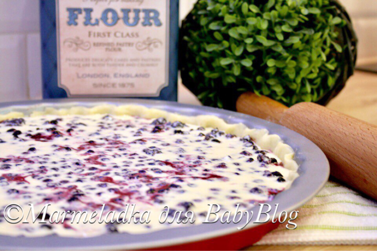 4. Выложите чернику (разморозив) слив лишний сок и сверху залейте сметанной массой.