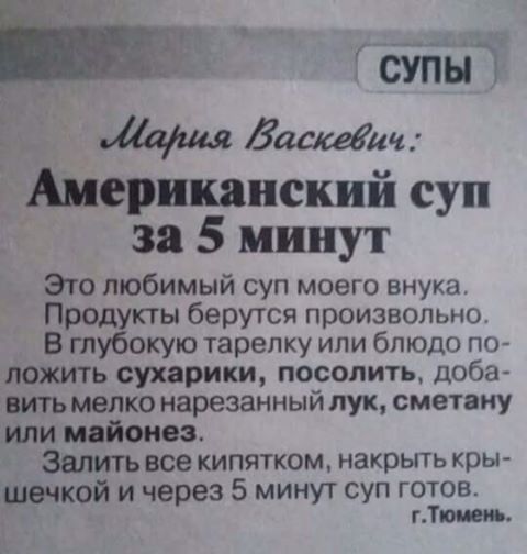 Эх, "Скатерть-самобранка"... Есть у мамы этот номер газеты, я как впервые прочитала - еле обед в себе удержала)