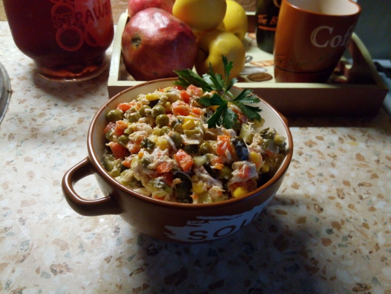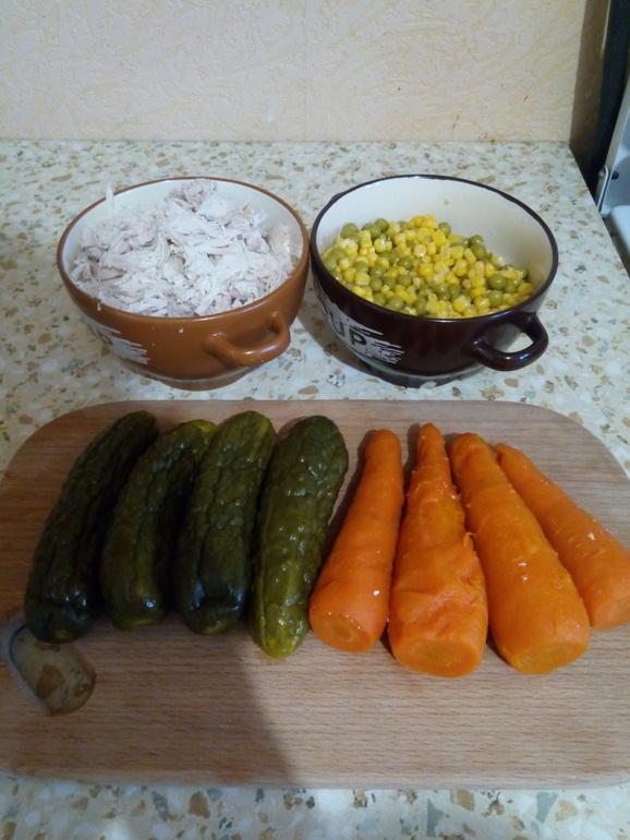 СалатыДля неприхотливых едоков и любителей майонезных салатов) Сама не ем, готовлю для мужа. Хотя салатик очень вкусный.