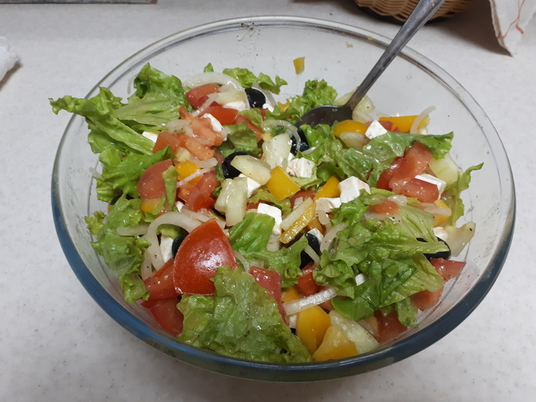 Вкусно и сочно кушать с салатом)