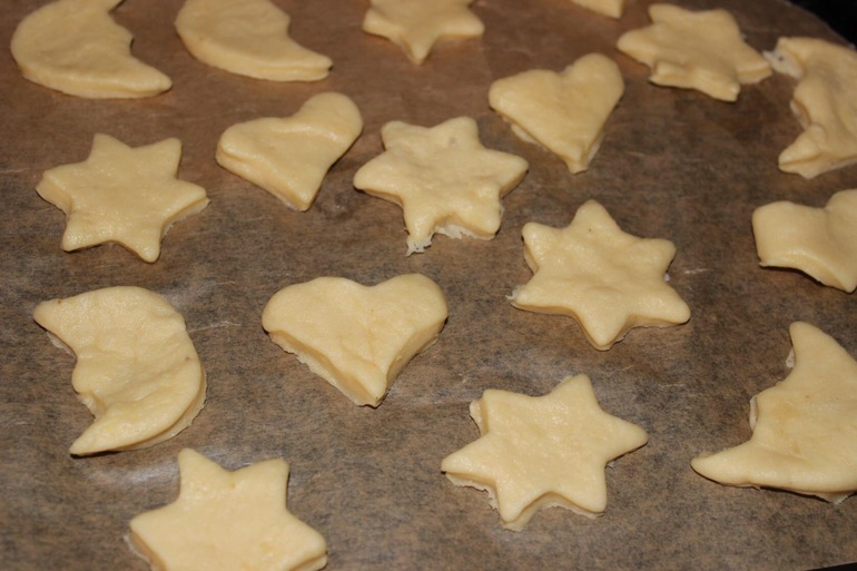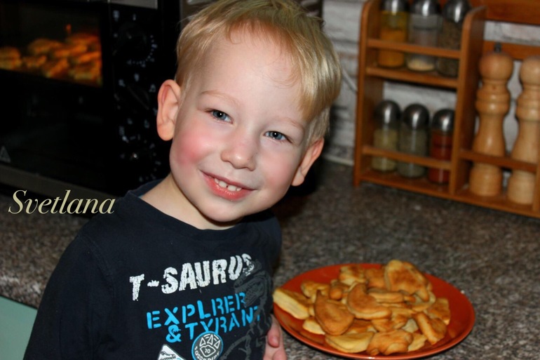 Печенья, пирожные, торты, пончики, кексыЭто солёное печенье, что то среднее между песочным и слоёным. Я не знаю как другие дети, но мои его только успевают таскать. Ну а делаем мы его вместе со средним сыночком, пусть немного корявое, но очень вкусное, особенно с молоком.