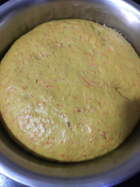 Затем добавить морковь, натертую на мелкой терке, вымесить, в самом конце добавить масло. Руками месить тесто минут 15, в кухонной машине я месила его минут 7. Тесто получается мягкое, податливое.