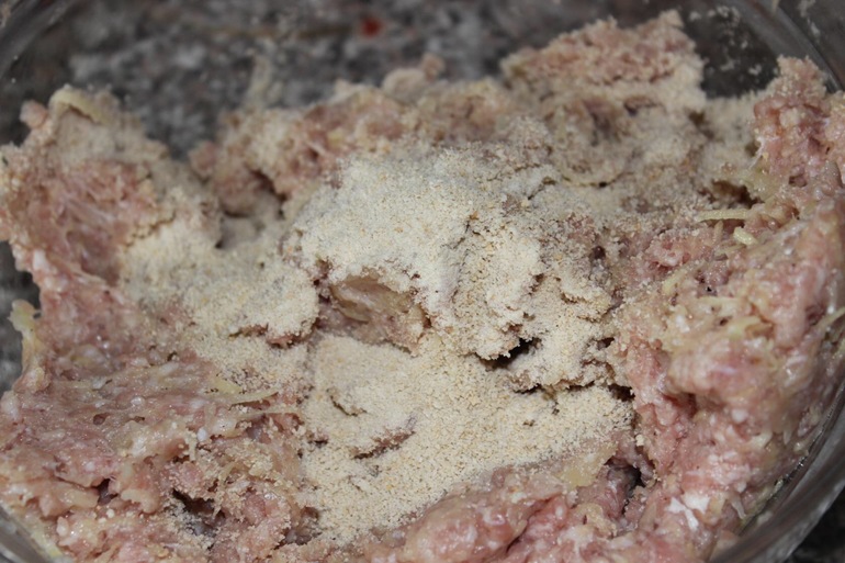 Добавляем панировочные сухари и сметану(майонез). Перчим, солим и добавляем чеснок по вкусу.