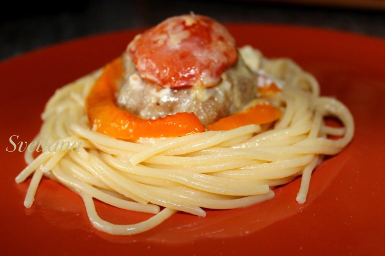 «Горячая кастрюля с котлетами» с болгарским перцем и помидорами