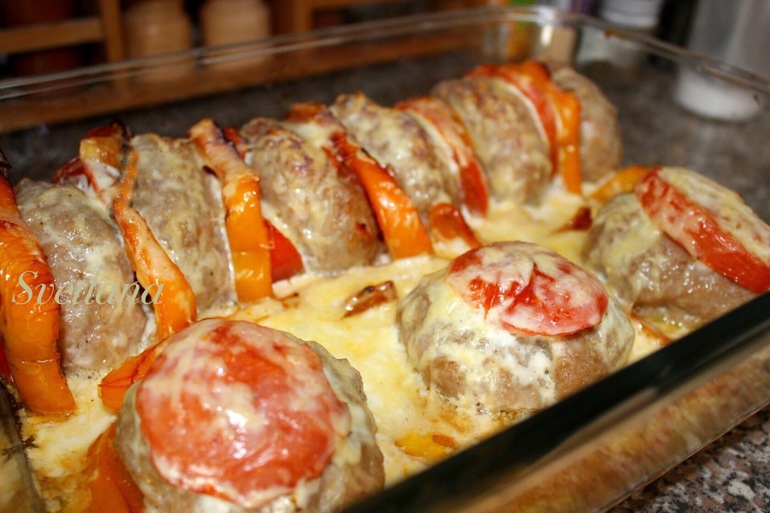 Готовим в духовке (рукав, горшочки, в фольге..)История этого блюда берёт свои корни из итальянского блюда Teglia di polpette- кастрюля с котлетами. Котлеты получаются очень сочными с прекрасным соусом: