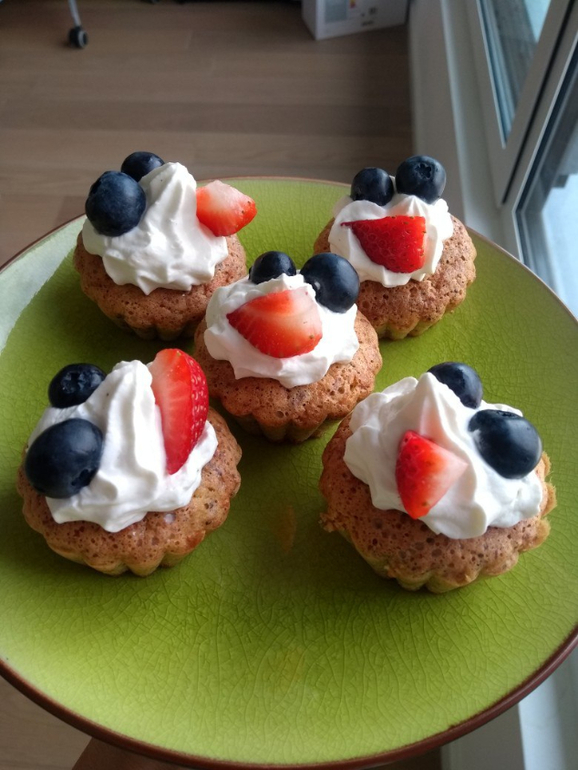 6. Раскладываем по формам и минут на 30 в духовку, проверяем на упругость в конце, а не зубочисткой.
