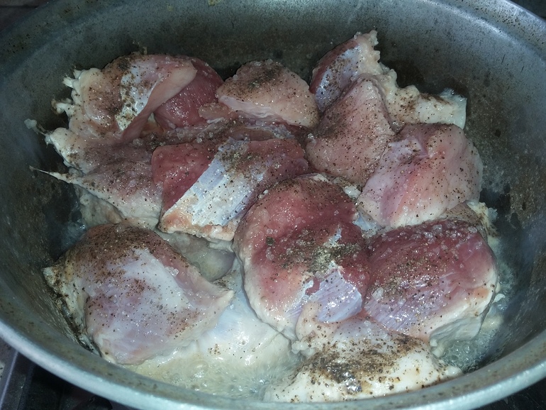 Посолить и поперчить, обжарить на растительном масле в казане: