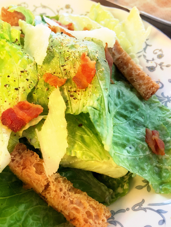 1 качан салата Романо (уберите его в холодильник, чтоб при подаче листья были хрустящие и сочные)
