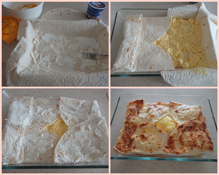 Рецепт : 150г сметаны +280 сулугуни потереть +3 яйца +200г мацареллы смешать.