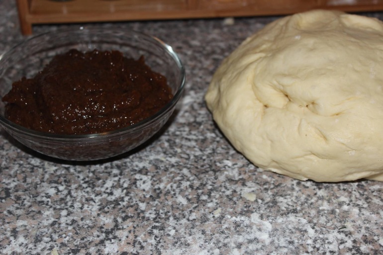 Как только тесто всплыло, я обычно делю его на две части, одна для солёной выпечки, а вторая для сладкой
