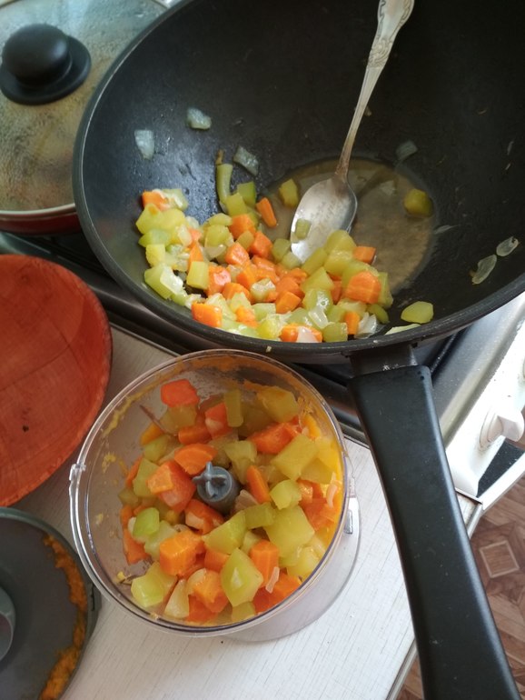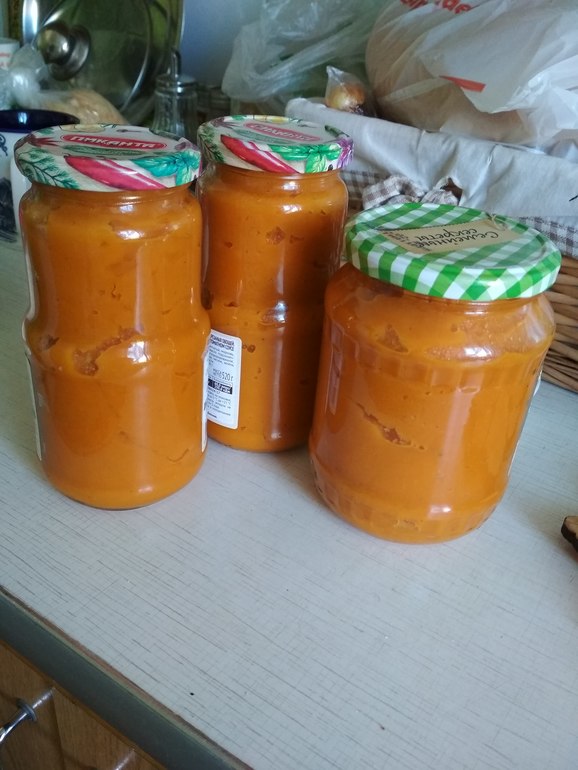 Заготовки (варенье, соленья, консервирование, заморозка)Девочки, первый раз готовила, но получилось очень даже вкусненького😋 взяла кабачки, дома залежались. 5 штук средних, убрала шкурку и семена. Остальное порезала кубиками. Далее килограмм моркови кубиками, и грамм 700 репчатого лука крупной резки.Сначала обжариваю на небольшом количестве масла морковь 🥕, так как она самая жёсткая, через минут 15 лук, ещё через 10 кабачки. Тушим в собственном соку до почти готовности. Далее в блендер и всю эту массу обратно в казан(в нем готовить проще). После этого положила томатной пасты 90грамм(можно больше, у меня больше не было), уксус 2 столовые ложки, соль, перец и сахар по вкусу. Тушим ещё минут 20 постоянно помешивая(учтите что икра плюётся 😂, будьте осторожны, я прекрывалась крышкой от казана. Далее раскладываем по стерелизованным банкам, закрываем, и вверх дном под одеяло на ночь. Приятного аппетита! Кстати всё в банки не влезло, поэтому я даже успела попробовать свой шедевр!