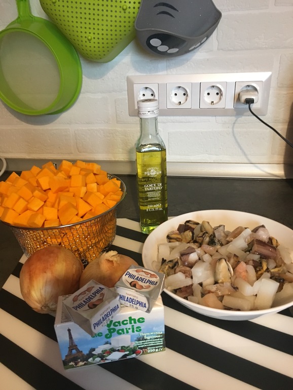 Суп из тыквы с морепродуктами