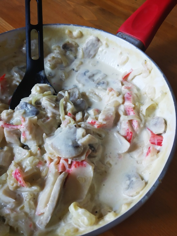 - упаковка крабового мяса «Снежный краб Вици» (в оригинальном рецепте используется краб. мясо, очень хорошо сюда пойдет гребешок и, наверное, креветки);