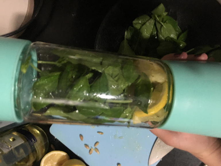 2. В блендере взбить базилик, петрушку, лимон, масло. Посолить и поперчить.
