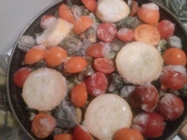 У меня есть замороженные помидоры, кабачки, баклажаны, брюссельская капуста.