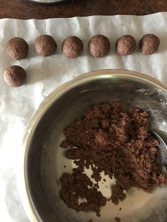 Затем бисквит в блендере раскрошила. И к получившимся крошкам добавляла крем по чуть-чуть.