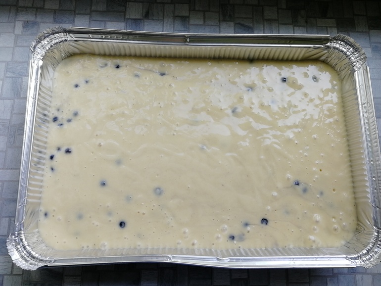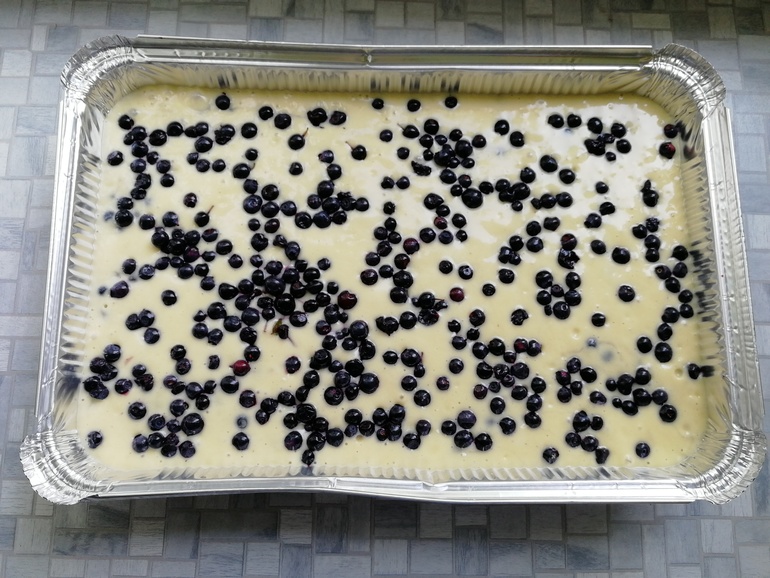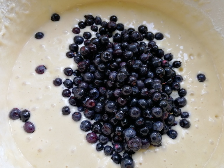 Всыпать половину ягод (в оригинальном рецепте используется всего стакан, у меня была поллитровая банка черники):