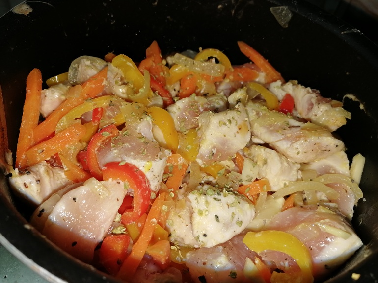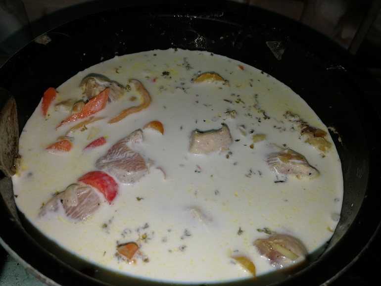 Но в этот раз у нас индейка с овощами в сливочном соусе.