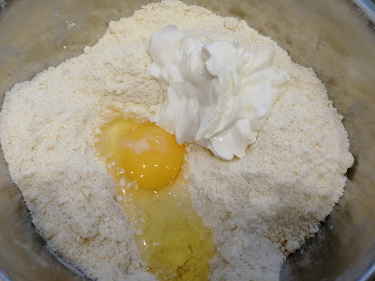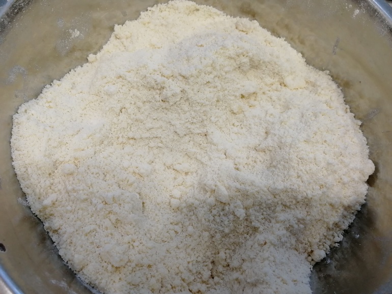 Перемешать сухие ингредиенты и добавить 200 г сл.масла: