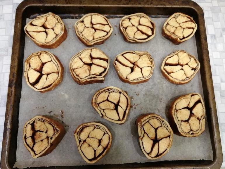 Острым тонким ножом нарезать на печеньки 7-10 мм и разложить на противне: