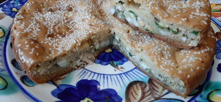 Рыбный пирог из консервов готов! Приятного аппетита!