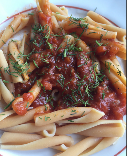 Извините, небольшое уточнение - казаречче могут быть сделаны не только из нута, но и из муки. Название (в переводе "по-домашнему") имеет отношение исключительно к форме пасты, а не составу.