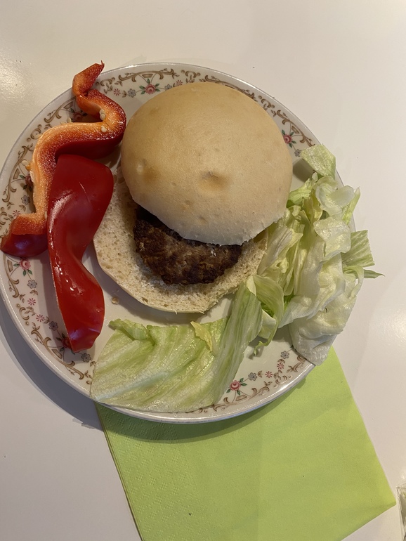 - понедельник - бургер с кетчупом, салатом и болгарским перчиком на закуску