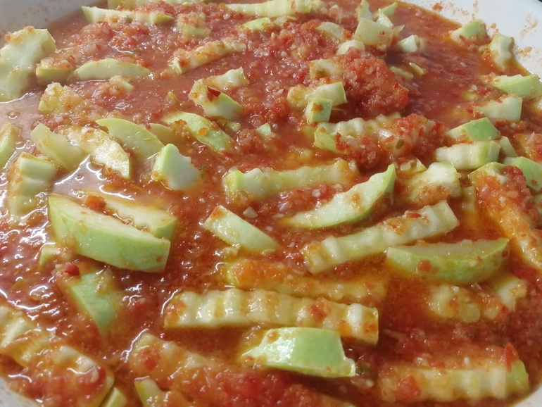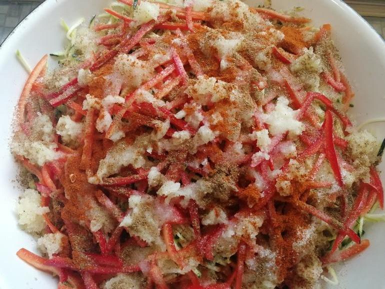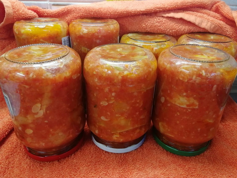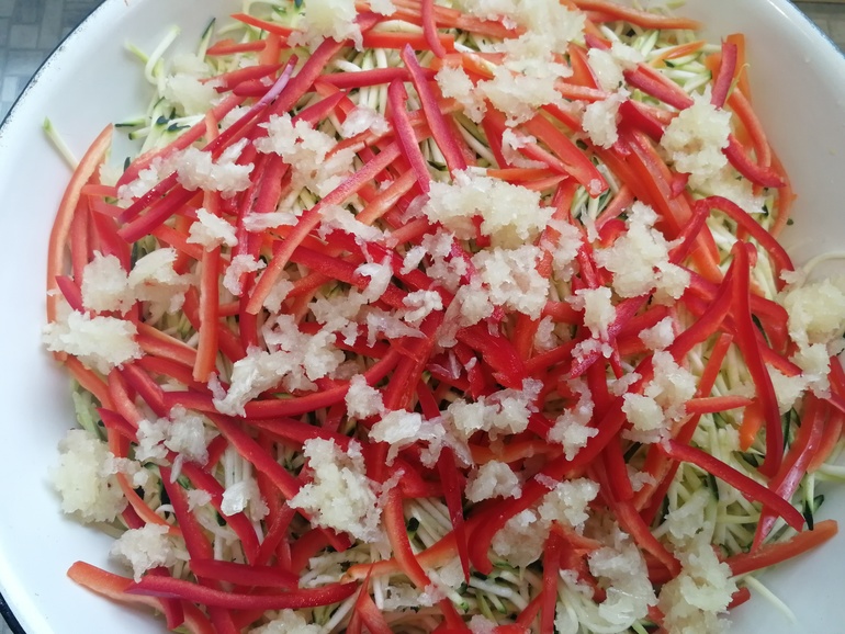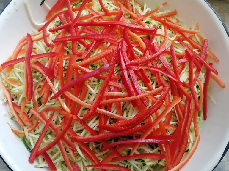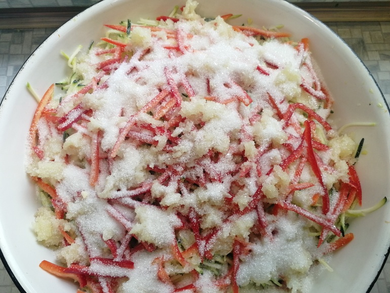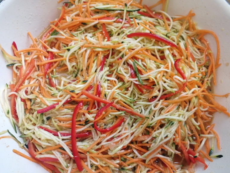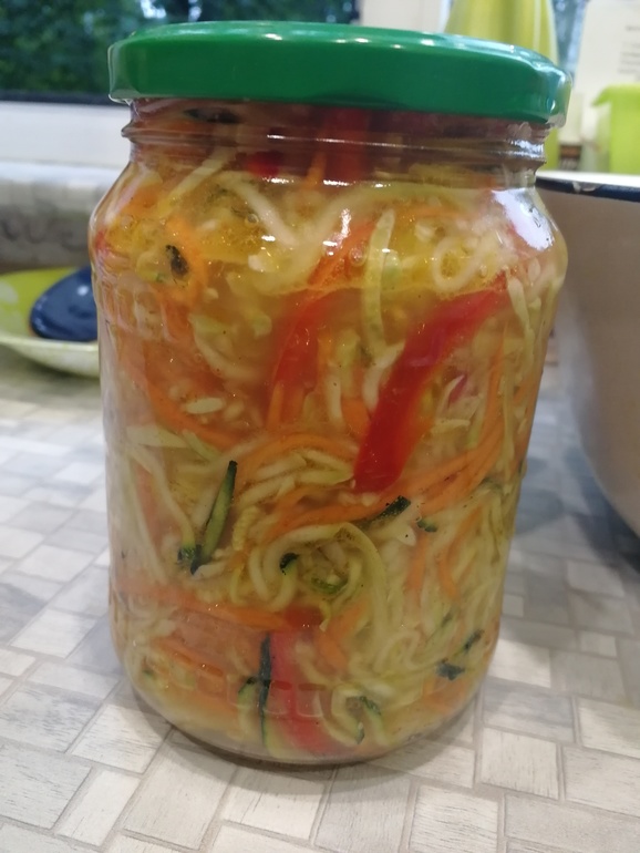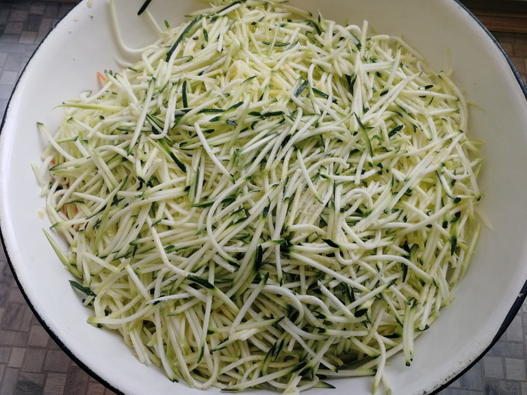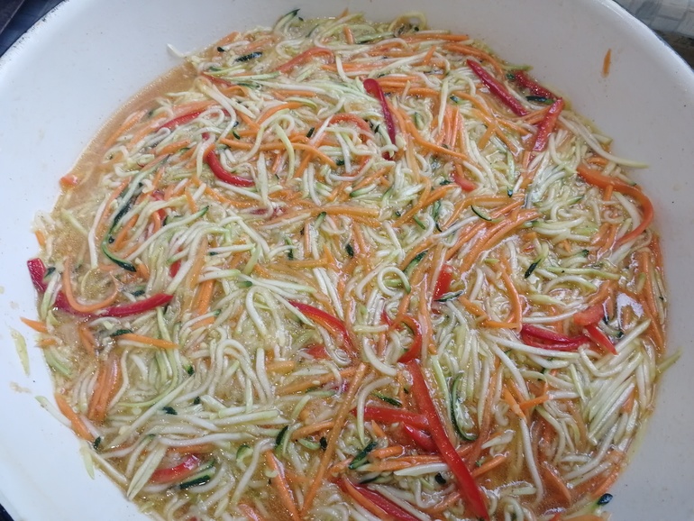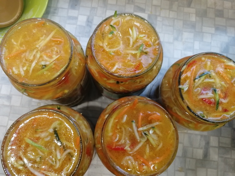 Но кабачки на даче всё росли и росли. Поэтому закатала еще и салат по-корейски.