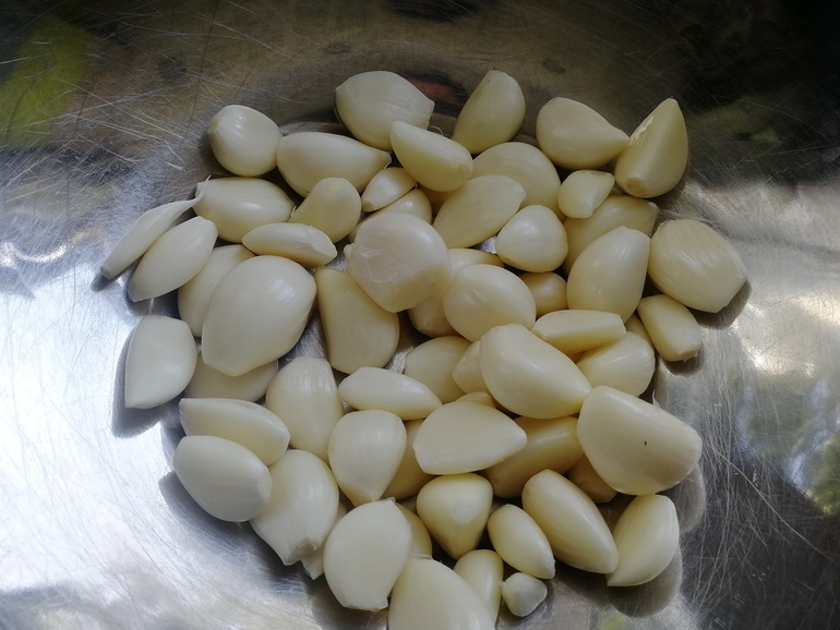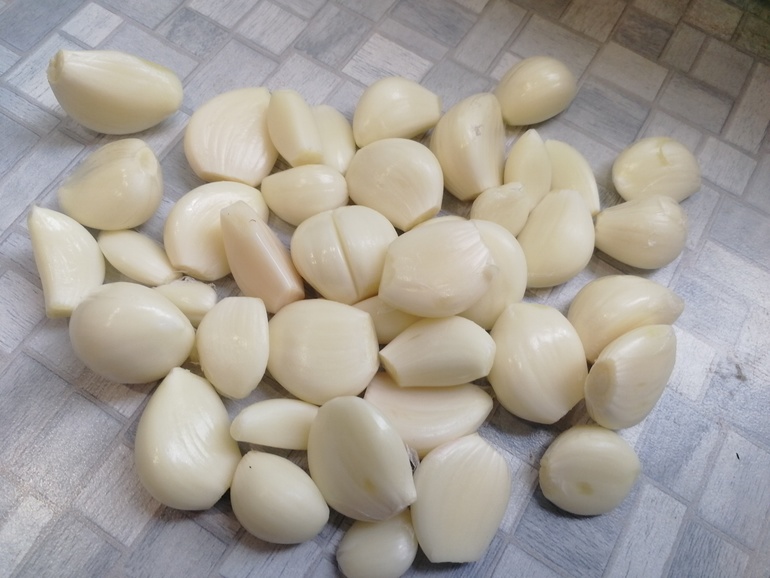 На 5 кг кабачков нам надо почистить 300 г чеснока: