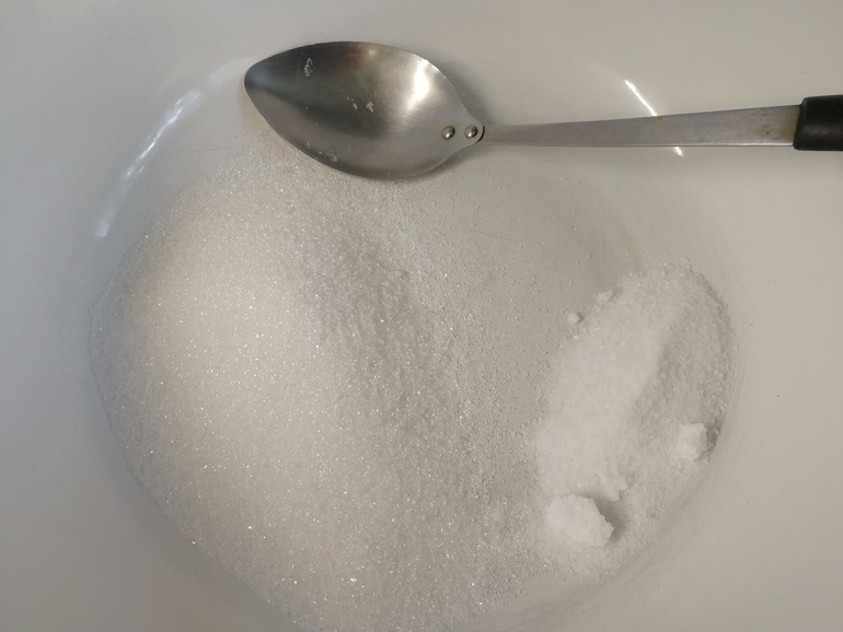 В таз насыпать 4 ст.л. соли и 1 ст сахара: