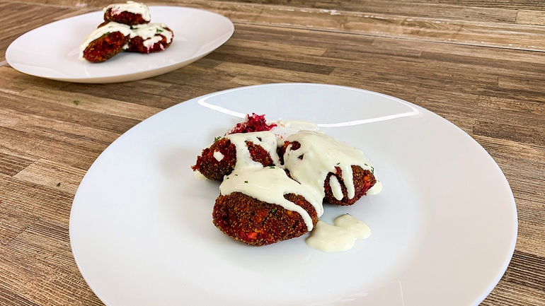 Очень вкусные свекольные котлетки с чесночным соусом.