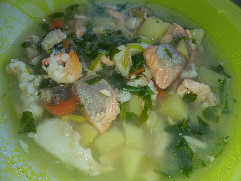 Блюда из рыбы и морепродуктовНе в российском понимании, когда должны быть соленые огурцы в рецепте. А в том смысле, что в супе много разных рыбных ингредиентов :)