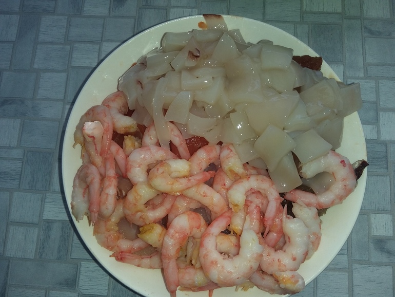 Залить холодной водой и поставить варить вместе с панцирями от креветок: