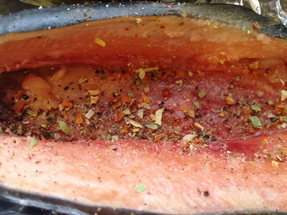 Положить рыбу в лодочки, посолить и приправить по вкусу: