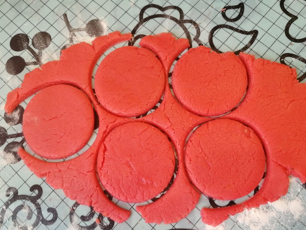 Остывшее тесто раскатать в пласт 3-4 мм. Нарезать кружки (я делаю это стаканом):
