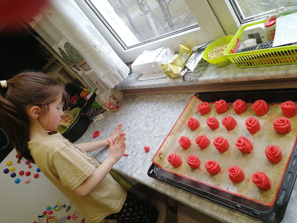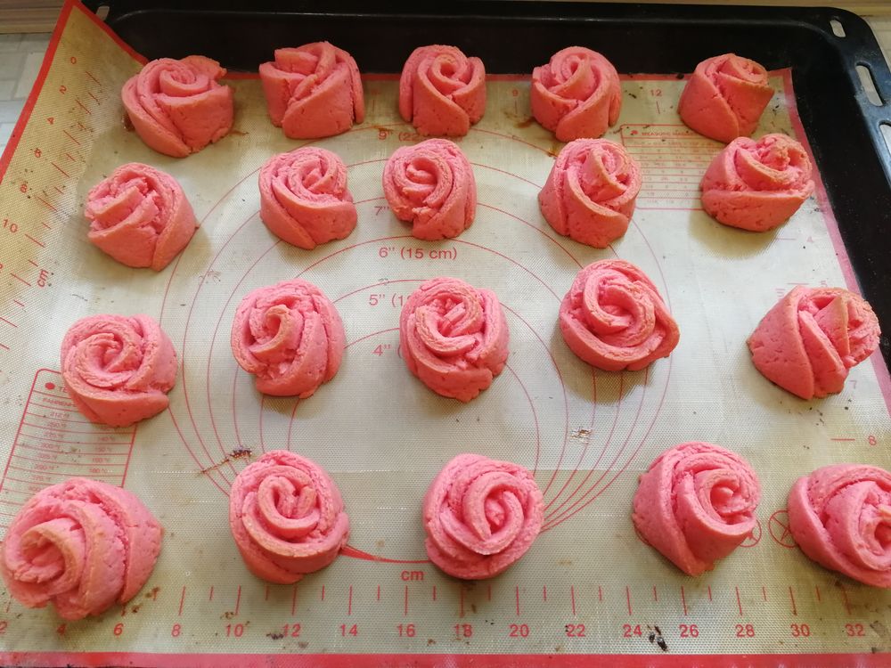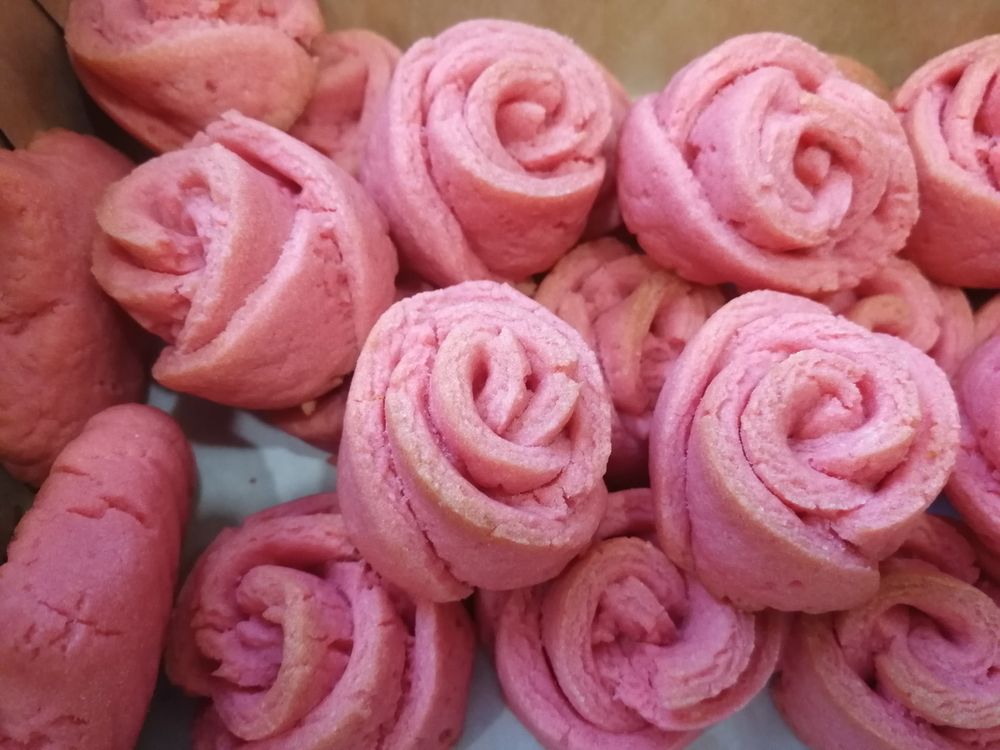Печенья, пирожные, торты, пончики, кексыВнучка заказала целый список вкусняшек себе на ДР. Начинаю показывать как исполняла ее заказ :) Начали с розочек. Естественно, нужны были розовые!