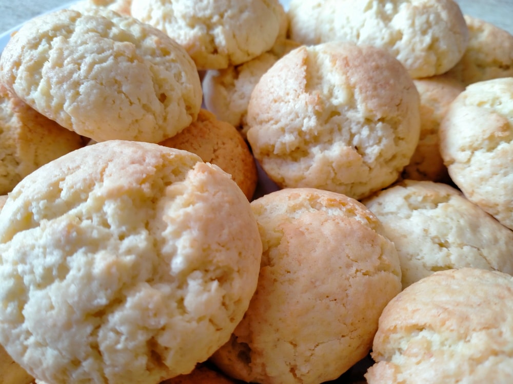 Почему-то подумалось мне, что песочное печенье с нею будет вкусным. 150 масла, 2 яйца, разрыхлитель, сахара на глаз (я насыпала примерно пол стакана) 200 гр. кокосовой стружки и муки, чтоб тесто можно было более-менее нормально формировать. Оно будет липкое. Смочить руки водой и скатать шарики. Выпекать при 180 градусах минут 15 (смотрите по своей духовке)
