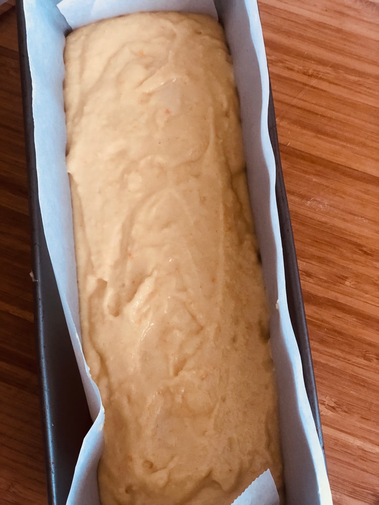 4- Переливаем тесто в смазанную маслом или застеленную бумагой форму. Так бисквит точно не пристанет и легко достанется.