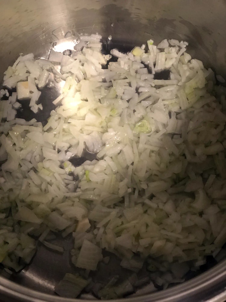 1- В кастрюле с толстым дном обжариваем лук на масле до мягкости и легкого золотистого оттенка