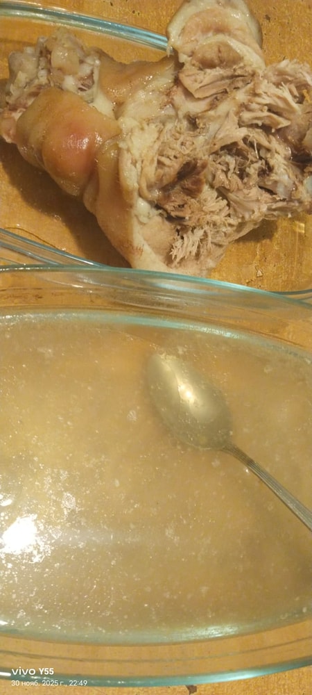 купила рульку свиную на холодец, приготовила необычным способом, без крышки в скороварке, в общем у меня не получилось (хотела 2 блюда приготовить, экономистка:) , но рулька за это время приготовилась, а бульон нам с сыном очень понравился, теперь думаю, может вообще готовить супы на свиной рульки? по цене выгоднее, чем говядина грудинка 1.000тг/3.500тг, по весу рулька больше почти в 2 раза, но вкус, почему то вкуснее бульон из рульки, чем от говядины на холодец, в общем свиная рулька, такая же вкусная, как и говяжья грудинка, для бульона..