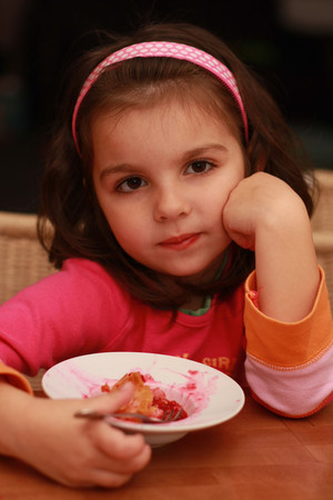не смотря на кислый соус даже доча с удовольствием кушала этот десерт:-)