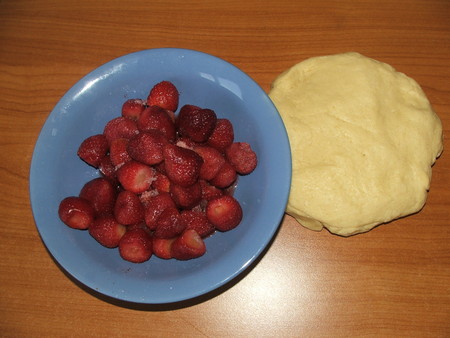 Тесто разделить на 2 неравные части (1/3 и 2/3).