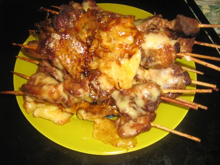 Какая красотища!!! я делаю такие же шашлычки только с мяса маринованного курицы или индейки, главное замочить в майонезе, чтоб после жарки не сухое было))))