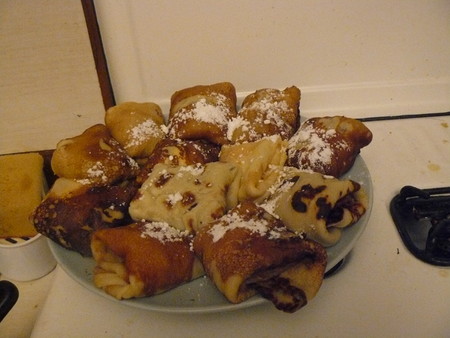 У меня 2 были: тушенные яблоки с грецким орехом и творог с сахаром..Сверху посыпала сахарной пудрой!!!